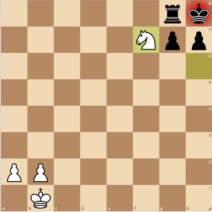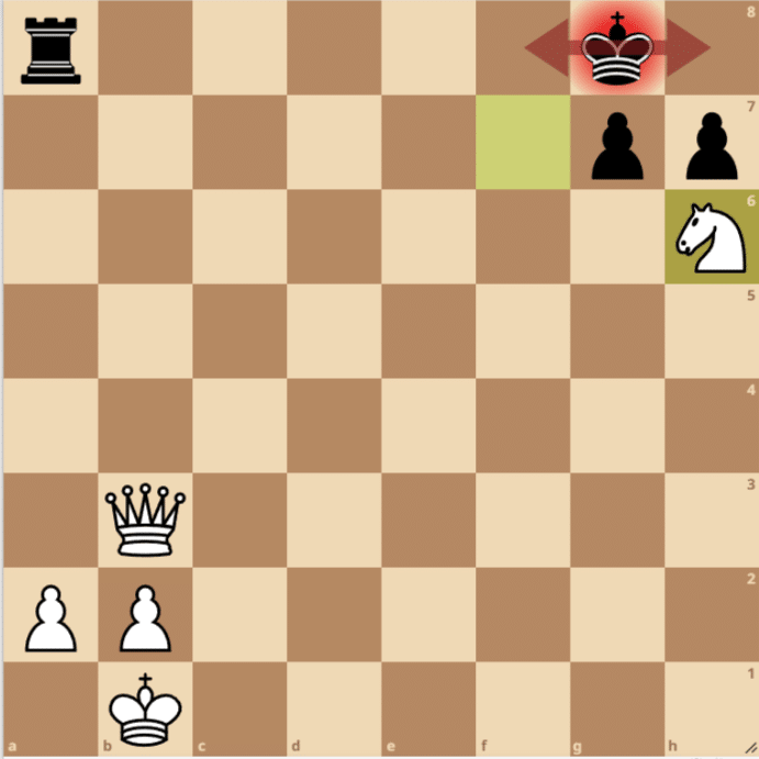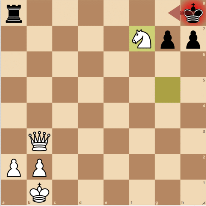 El Mate de la Coz es uno de los patrones de jaque mate más elegantes y sorprendentes en el ajedrez. Ocurre cuando el rey enemigo está completamente rodeado por sus propias piezas, sin casillas de escape, y un caballo entrega el jaque mate final. Este mate demuestra la potencia del caballo en espacios restringidos y cómo puede aprovechar las limitaciones del rey adversario.