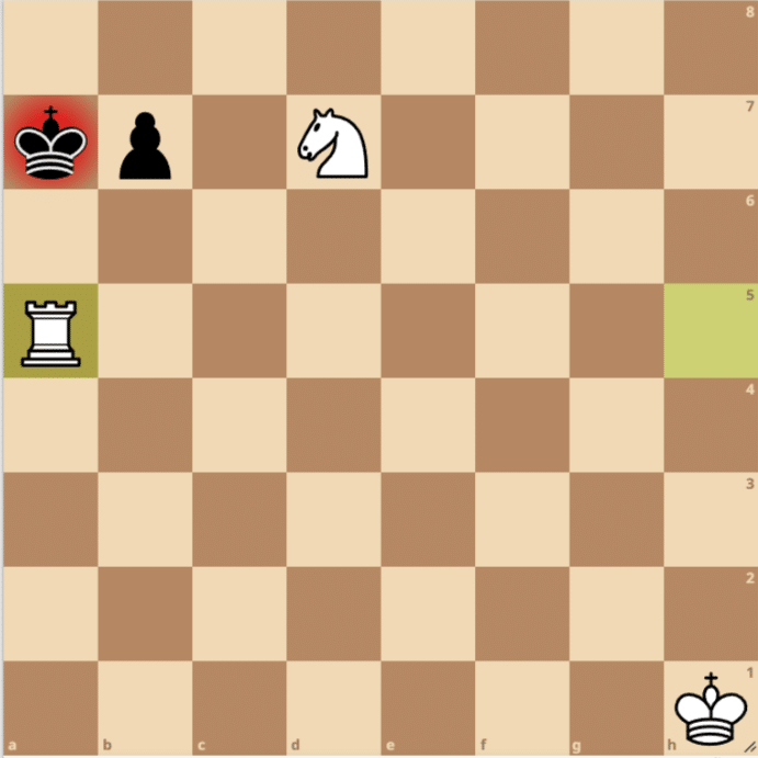 El Mate de Anastasia es un patrón de jaque mate que ocurre generalmente cuando el rey enemigo está atrapado en un borde del tablero, y el mate se ejecuta usando una combinación de un caballo y una torre o dama. Este mate se suele dar en una posición donde el rey está bloqueado por sus propias piezas o por el borde del tablero, y se aprovecha la acción coordinada de las piezas blancas, en especial el caballo, para limitar las casillas de escape.