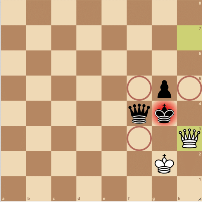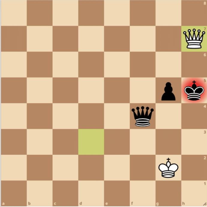 El Mate de Cozio ocurre cuando el rey enemigo está atrapado entre sus piezas. Las blancas rezan para que esto sea tablas pero encontramos este patrón de mate, es una demostración de la movilidad de la dama, aprovechando la posición de las piezas negras para dar jaque mate al rey enemigo.